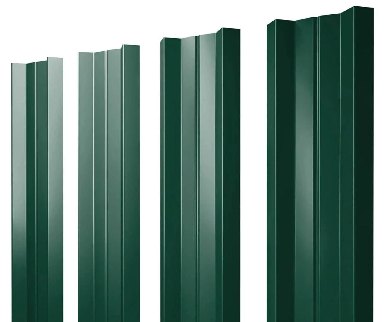 Уникальная форма. Секция ограждения имеет выпуклую во внутреннюю сторону центральную часть. По бокам евроштакетника м-образного 0,35x110 мм зелёного ral 6005 1м располагаются дополнительные ребра.